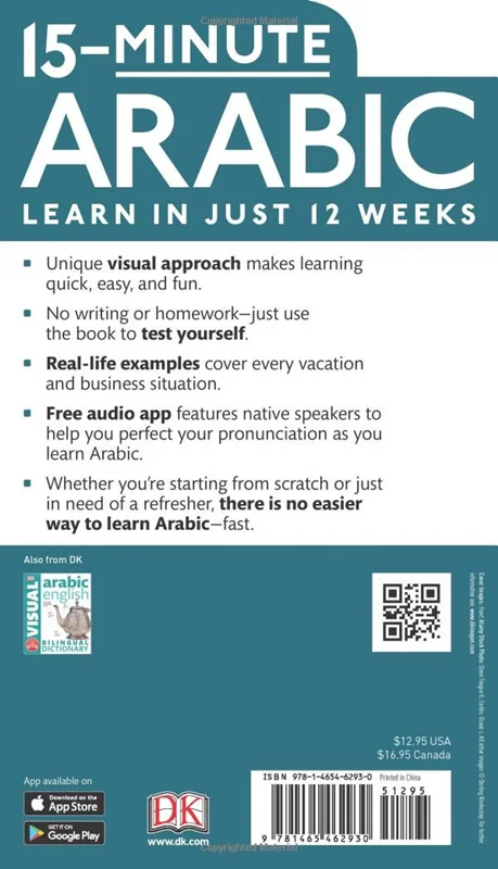 12 فصل مضمون به درس های 15 دقیقه ای روزانه تقسیم می شوند ، که شامل طیف وسیعی از موضوعات عملی از معاشرت تا تجارت است. هر درس واژگان عربی و ملزومات دستور زبان را با عکس های تمام رنگی برای یک راهنمای زبان کاربر پسند و در دسترس ترکیب می کند. دوره زبان عربی ایده آل برای مبتدیان ، مجموعه زبانهای 15 دقیقه ای به شما یاد می دهد که فقط در مدت 12 هفته به یک زبان جدید صحبت کنید.