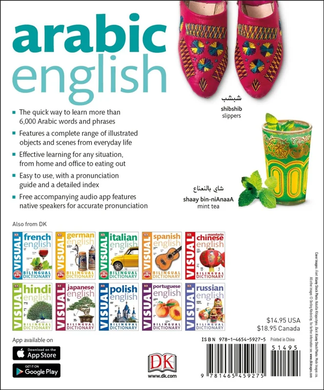 به تازگی اصلاح و به روز شده ، فرهنگ لغت بصری دو زبانه عربی - انگلیسی یک روش سریع و شهودی برای یادگیری و به یاد آوردن کلمات روزمره به زبان عربی است.