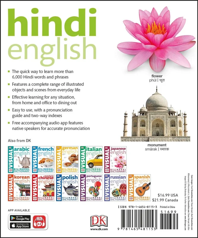 با بیش از 6500 کلمه و جمله کاملاً مصور به زبان هندی و انگلیسی ، به همراه یک برنامه صوتی دو زبانه رایگان ، یادگیری زبان هندی هرگز آسان نبوده است.
