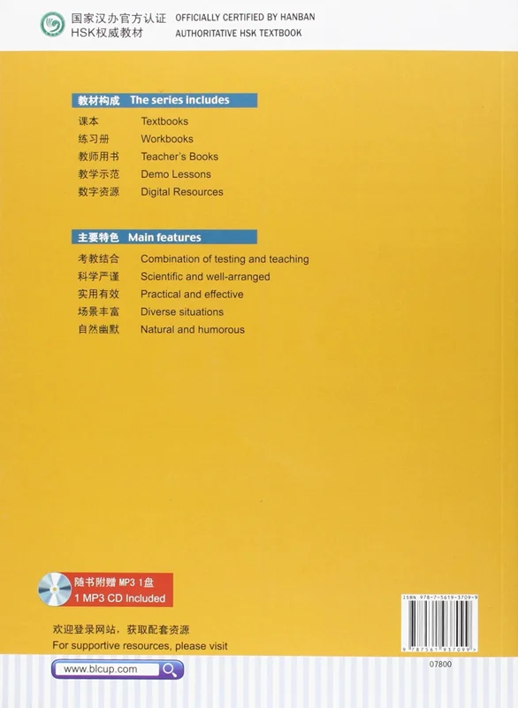 دوره استاندارد HSK که توسط هانبان مجاز است با تلاش مشترک مطبوعات دانشگاه زبان و فرهنگ پکن و آزمون بین المللی چینی (CTI) ساخته شده است. با داشتن مقالات آزمون HSK به عنوان منبع اصلی آن ، دوره استاندارد HSK با یک سبک طنز ، مباحث آشنا و یک طراحی دوره علمی مشخص می شود. تطبیق آزمون HSK در همه جنبه ها ، از محتوا ، فرم تا سطح ، مجموعه ای از کتابهای دوره جدید است که ایده "ترکیب تست و تدریس ، و ترویج یادگیری و تدریس را با آزمون" ارائه می دهد. برای موسسات کنفوسیوس در کشورهای مختلف و همچنین سایر موسسات آموزش چینی و یادگیرندگان خودآموز مناسب است.کل سری به شش سطح مطابق با تست HSK تقسیم می شود ، یک جلد برای هر یک از سطوح 1-3 و دو جلد برای هر یک از سطوح 4-6 ، که در مجموع نه جلد است. با یک کتاب درسی ، یک کتاب کار و یک کتاب معلم در هر جلد ، در مجموع 27 کتاب وجود دارد. این کتاب درسی 1 است که شامل 15 درس است و شامل 150 کلمه و 45 امتیاز زبان است که توسط آزمون HSK سطح 1 مورد نیاز است. پس از اتمام این کتاب ، دانش آموزان می توانند "چند کلمه و جملات ساده چینی را درک کنند و از آنها استفاده کنند تا نیازهای خاص خود را در ارتباط برقرار کنند و خود را برای یادگیری بیشتر آماده کنند".