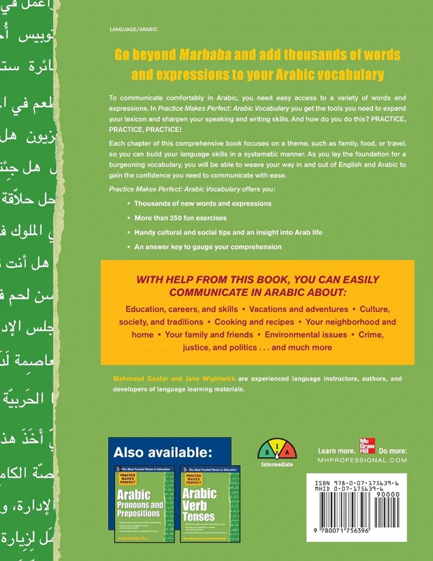 To communicate comfortably in Arabic, you need easy access to a variety of words and expressions. In Practice Makes Perfect: Arabic Vocabulary you get the tools you need to expand your lexicon and sharpen your speaking and writing skills. And how do you do this? PRACTICE, PRACTICE, PRACTICE!